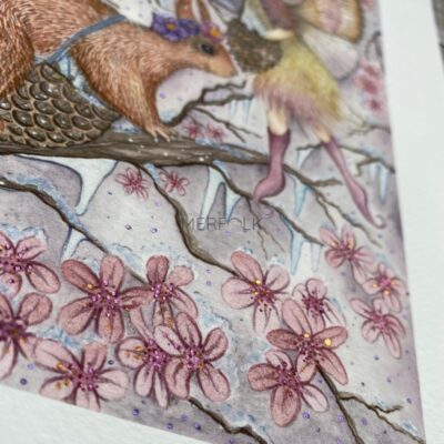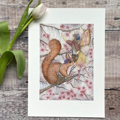 All fairies live in harmony with the nature they are part of, and strive to keep all in their care safe. This print is perfect for all fairy lovers – boys and girls, of all ages, because everyone should believe in the magic of the hidden natural world around us. This print also works well with the other seasonal fairy prints in the range.